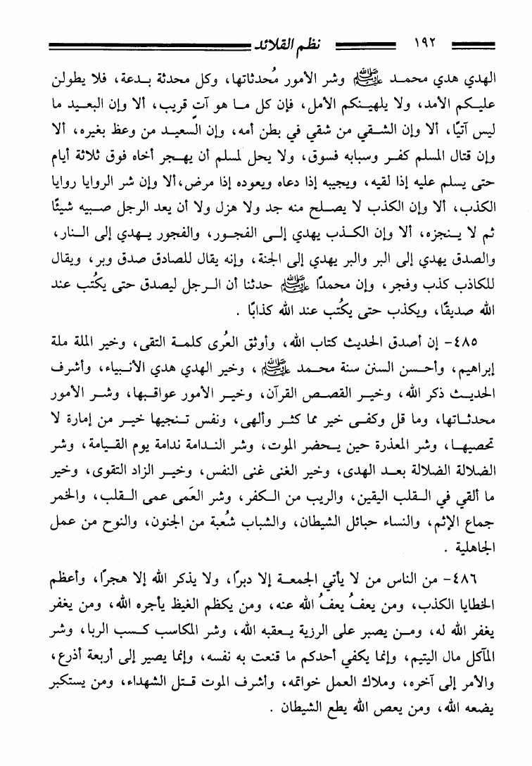 نظم القلائد في ترتيب كتاب الفوائد للإمام ابن القيم مبوبا على أبواب شعب الإيمان والأخلاق