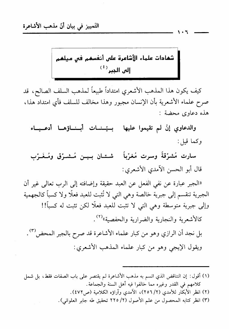 نام کتاب : التمييز في بيان أن مذهب الأشاعرة ليس على مذهب السلف العزيز رد على كتاب أهل السنة الأشاعرة نویسنده : حاي بن سالم الحاي أبو عمر جلد : 1 صفحه : 106
