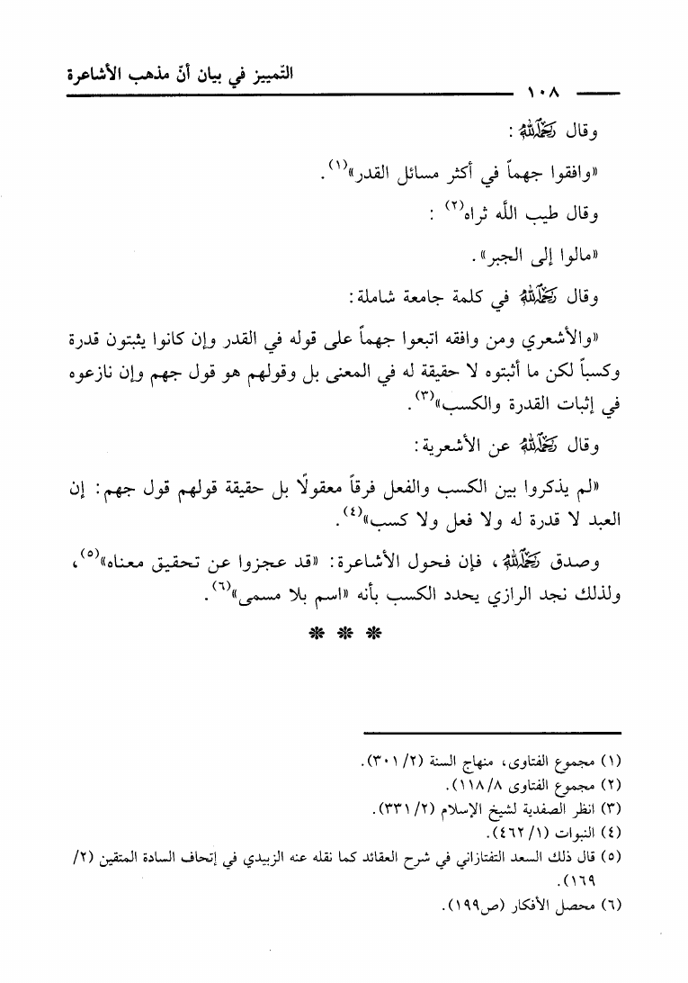 نام کتاب : التمييز في بيان أن مذهب الأشاعرة ليس على مذهب السلف العزيز رد على كتاب أهل السنة الأشاعرة نویسنده : حاي بن سالم الحاي أبو عمر جلد : 1 صفحه : 108