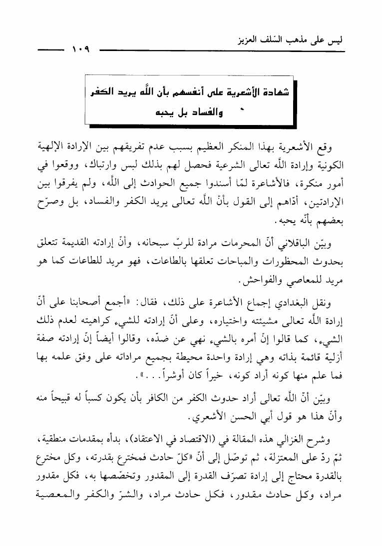 نام کتاب : التمييز في بيان أن مذهب الأشاعرة ليس على مذهب السلف العزيز رد على كتاب أهل السنة الأشاعرة نویسنده : حاي بن سالم الحاي أبو عمر جلد : 1 صفحه : 109