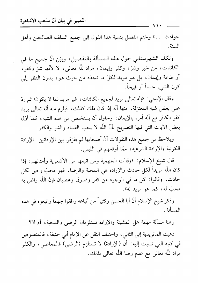 نام کتاب : التمييز في بيان أن مذهب الأشاعرة ليس على مذهب السلف العزيز رد على كتاب أهل السنة الأشاعرة نویسنده : حاي بن سالم الحاي أبو عمر جلد : 1 صفحه : 110