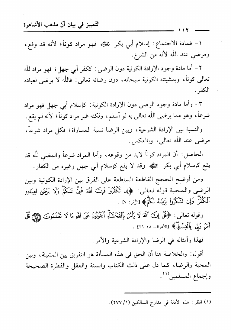نام کتاب : التمييز في بيان أن مذهب الأشاعرة ليس على مذهب السلف العزيز رد على كتاب أهل السنة الأشاعرة نویسنده : حاي بن سالم الحاي أبو عمر جلد : 1 صفحه : 112