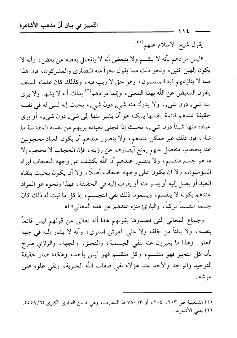 نام کتاب : التمييز في بيان أن مذهب الأشاعرة ليس على مذهب السلف العزيز رد على كتاب أهل السنة الأشاعرة نویسنده : حاي بن سالم الحاي أبو عمر جلد : 1 صفحه : 114