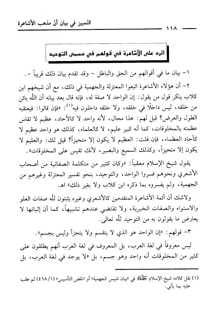 نام کتاب : التمييز في بيان أن مذهب الأشاعرة ليس على مذهب السلف العزيز رد على كتاب أهل السنة الأشاعرة نویسنده : حاي بن سالم الحاي أبو عمر جلد : 1 صفحه : 118