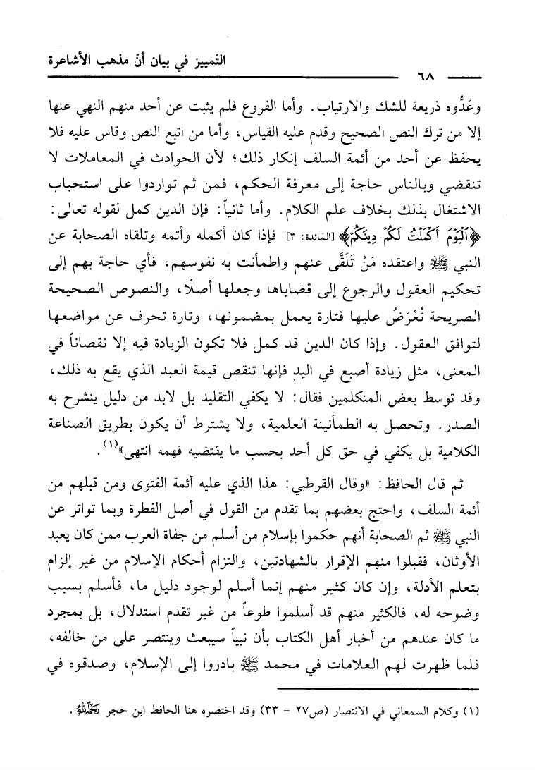 نام کتاب : التمييز في بيان أن مذهب الأشاعرة ليس على مذهب السلف العزيز رد على كتاب أهل السنة الأشاعرة نویسنده : حاي بن سالم الحاي أبو عمر جلد : 1 صفحه : 68