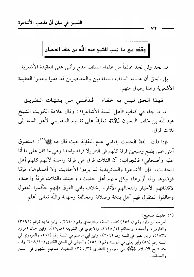 نام کتاب : التمييز في بيان أن مذهب الأشاعرة ليس على مذهب السلف العزيز رد على كتاب أهل السنة الأشاعرة نویسنده : حاي بن سالم الحاي أبو عمر جلد : 1 صفحه : 72