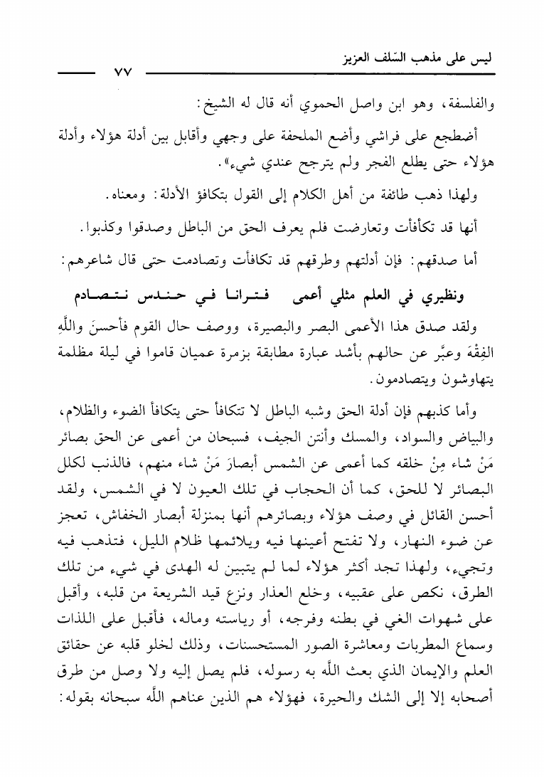 نام کتاب : التمييز في بيان أن مذهب الأشاعرة ليس على مذهب السلف العزيز رد على كتاب أهل السنة الأشاعرة نویسنده : حاي بن سالم الحاي أبو عمر جلد : 1 صفحه : 77