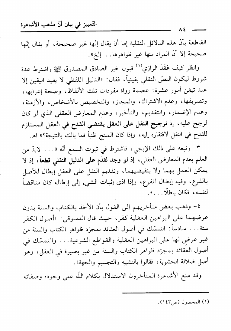 نام کتاب : التمييز في بيان أن مذهب الأشاعرة ليس على مذهب السلف العزيز رد على كتاب أهل السنة الأشاعرة نویسنده : حاي بن سالم الحاي أبو عمر جلد : 1 صفحه : 84