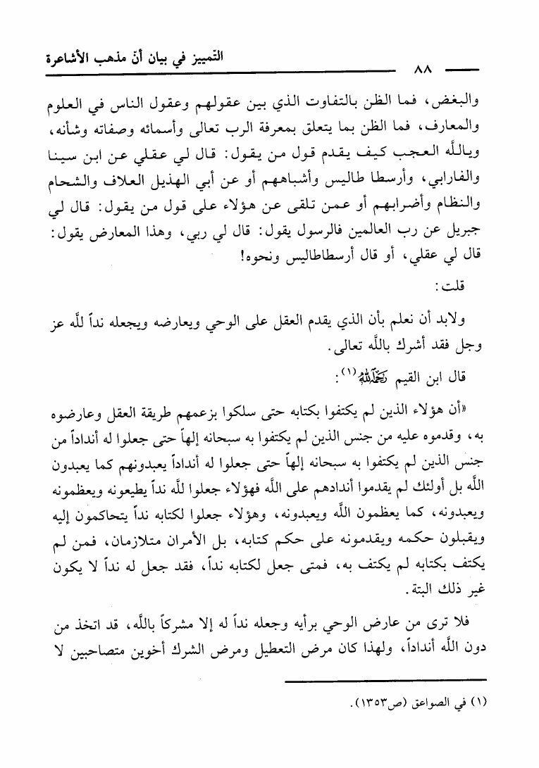 نام کتاب : التمييز في بيان أن مذهب الأشاعرة ليس على مذهب السلف العزيز رد على كتاب أهل السنة الأشاعرة نویسنده : حاي بن سالم الحاي أبو عمر جلد : 1 صفحه : 88