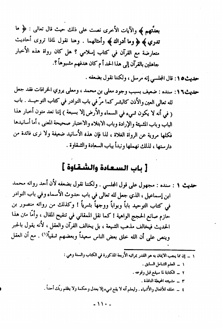 نام کتاب : كسر الصنم أو ما ورد في الكتب المذهبية من الأمور المخالفة للقرآن الكريم والعقل نقض كتاب أصول الكافي للكليني نویسنده : آية الله العظمى السيد أبو الفضل ابن الرضا البرقعي جلد : 1 صفحه : 110