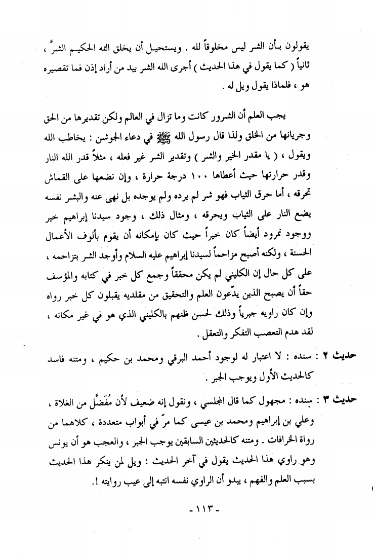 نام کتاب : كسر الصنم أو ما ورد في الكتب المذهبية من الأمور المخالفة للقرآن الكريم والعقل نقض كتاب أصول الكافي للكليني نویسنده : آية الله العظمى السيد أبو الفضل ابن الرضا البرقعي جلد : 1 صفحه : 113