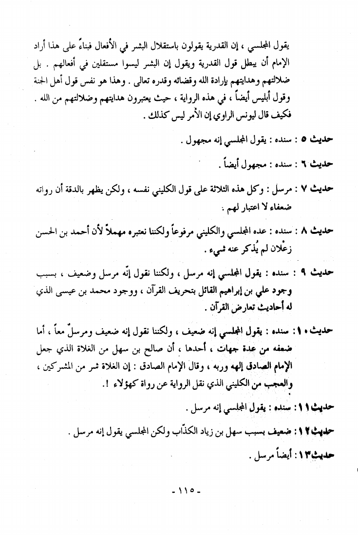 نام کتاب : كسر الصنم أو ما ورد في الكتب المذهبية من الأمور المخالفة للقرآن الكريم والعقل نقض كتاب أصول الكافي للكليني نویسنده : آية الله العظمى السيد أبو الفضل ابن الرضا البرقعي جلد : 1 صفحه : 115