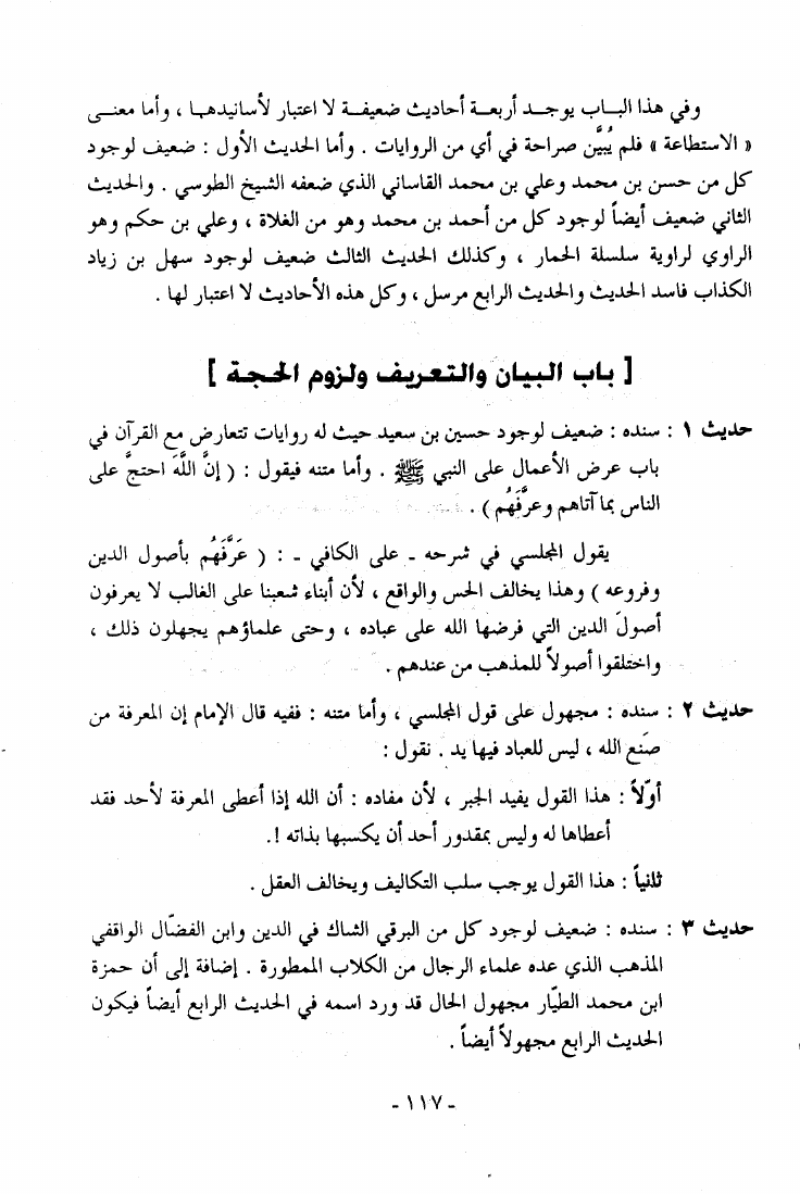 نام کتاب : كسر الصنم أو ما ورد في الكتب المذهبية من الأمور المخالفة للقرآن الكريم والعقل نقض كتاب أصول الكافي للكليني نویسنده : آية الله العظمى السيد أبو الفضل ابن الرضا البرقعي جلد : 1 صفحه : 117
