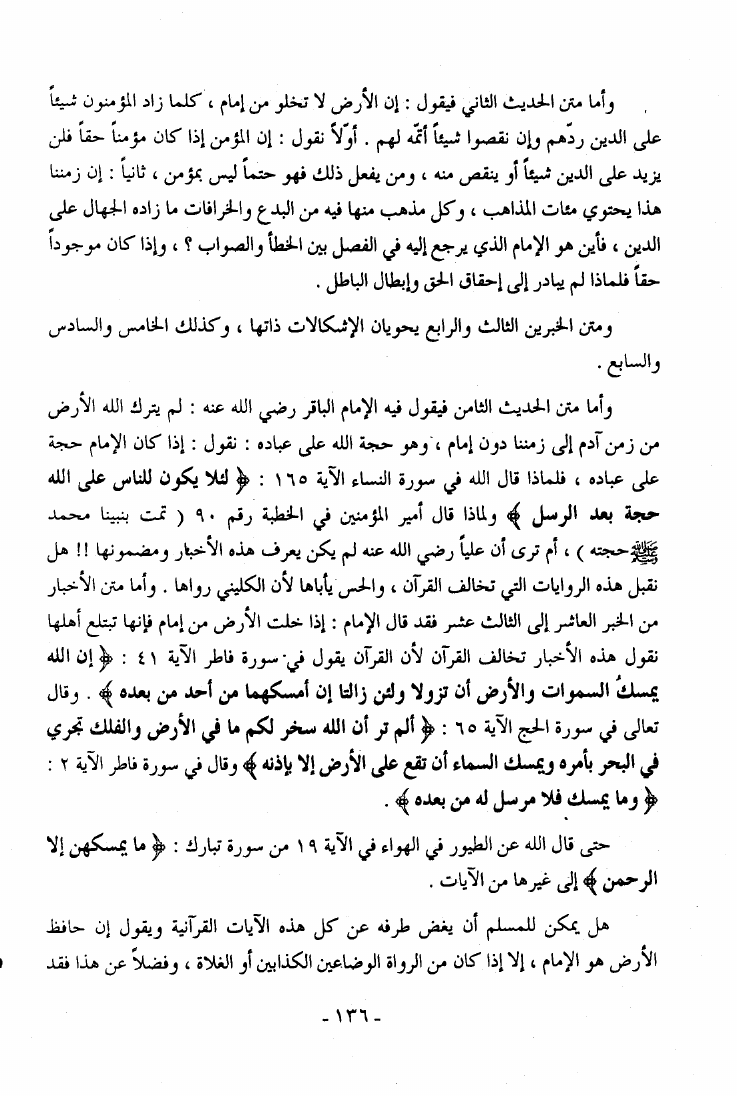 نام کتاب : كسر الصنم أو ما ورد في الكتب المذهبية من الأمور المخالفة للقرآن الكريم والعقل نقض كتاب أصول الكافي للكليني نویسنده : آية الله العظمى السيد أبو الفضل ابن الرضا البرقعي جلد : 1 صفحه : 136