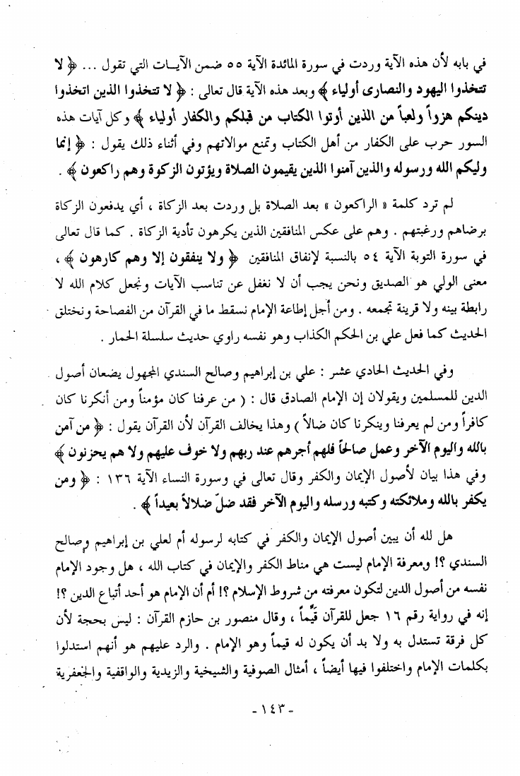 نام کتاب : كسر الصنم أو ما ورد في الكتب المذهبية من الأمور المخالفة للقرآن الكريم والعقل نقض كتاب أصول الكافي للكليني نویسنده : آية الله العظمى السيد أبو الفضل ابن الرضا البرقعي جلد : 1 صفحه : 143
