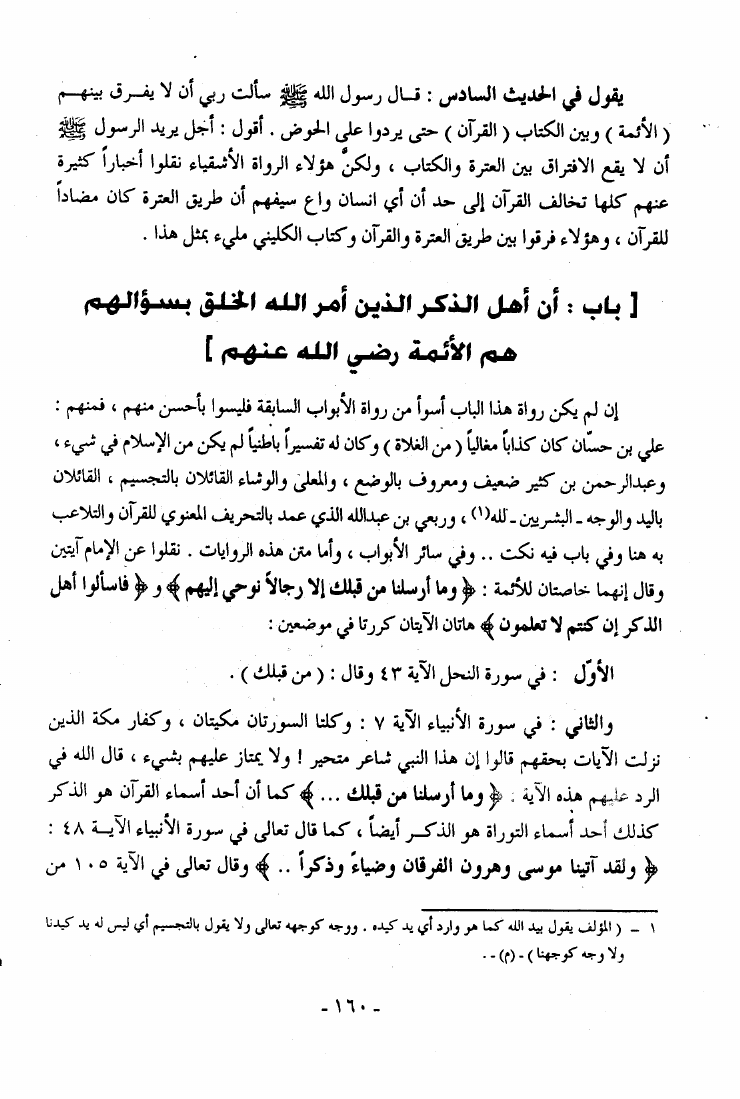 نام کتاب : كسر الصنم أو ما ورد في الكتب المذهبية من الأمور المخالفة للقرآن الكريم والعقل نقض كتاب أصول الكافي للكليني نویسنده : آية الله العظمى السيد أبو الفضل ابن الرضا البرقعي جلد : 1 صفحه : 160