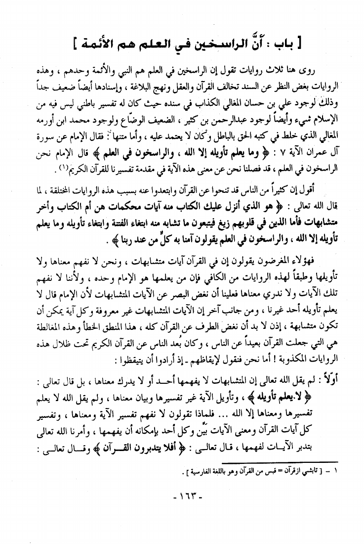 نام کتاب : كسر الصنم أو ما ورد في الكتب المذهبية من الأمور المخالفة للقرآن الكريم والعقل نقض كتاب أصول الكافي للكليني نویسنده : آية الله العظمى السيد أبو الفضل ابن الرضا البرقعي جلد : 1 صفحه : 163