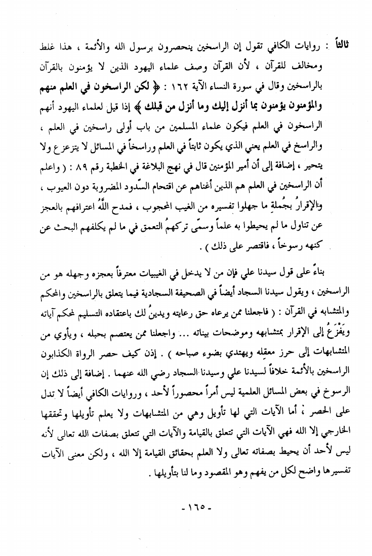 نام کتاب : كسر الصنم أو ما ورد في الكتب المذهبية من الأمور المخالفة للقرآن الكريم والعقل نقض كتاب أصول الكافي للكليني نویسنده : آية الله العظمى السيد أبو الفضل ابن الرضا البرقعي جلد : 1 صفحه : 165