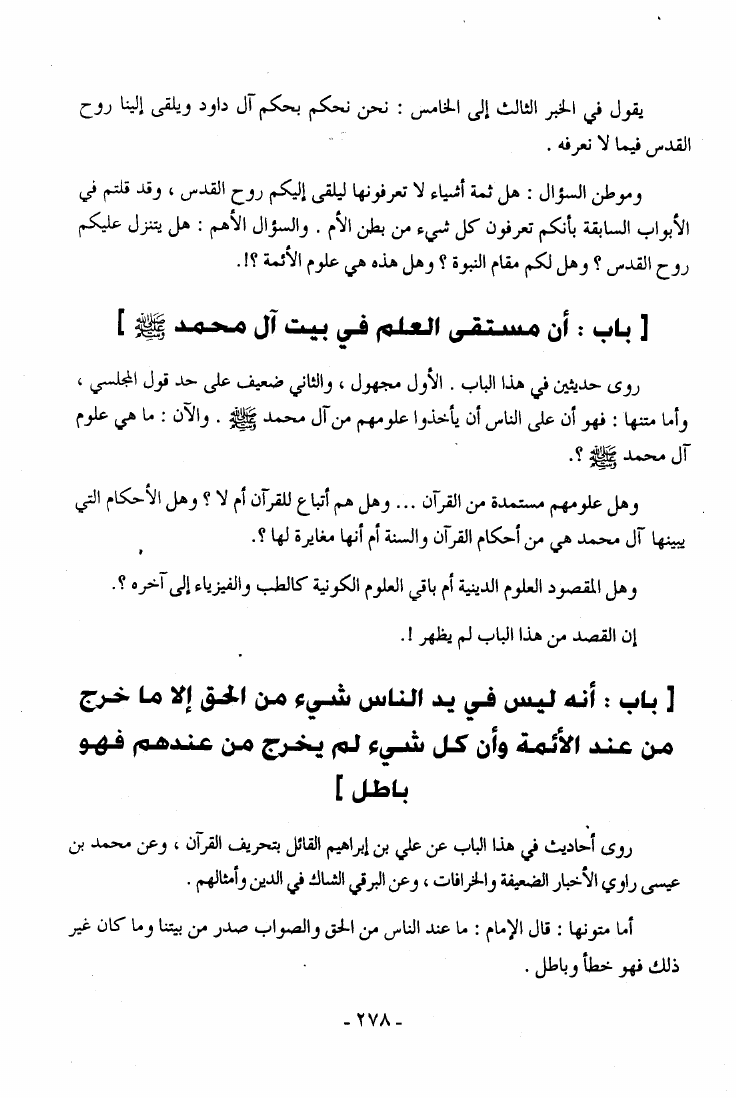نام کتاب : كسر الصنم أو ما ورد في الكتب المذهبية من الأمور المخالفة للقرآن الكريم والعقل نقض كتاب أصول الكافي للكليني نویسنده : آية الله العظمى السيد أبو الفضل ابن الرضا البرقعي جلد : 1 صفحه : 278