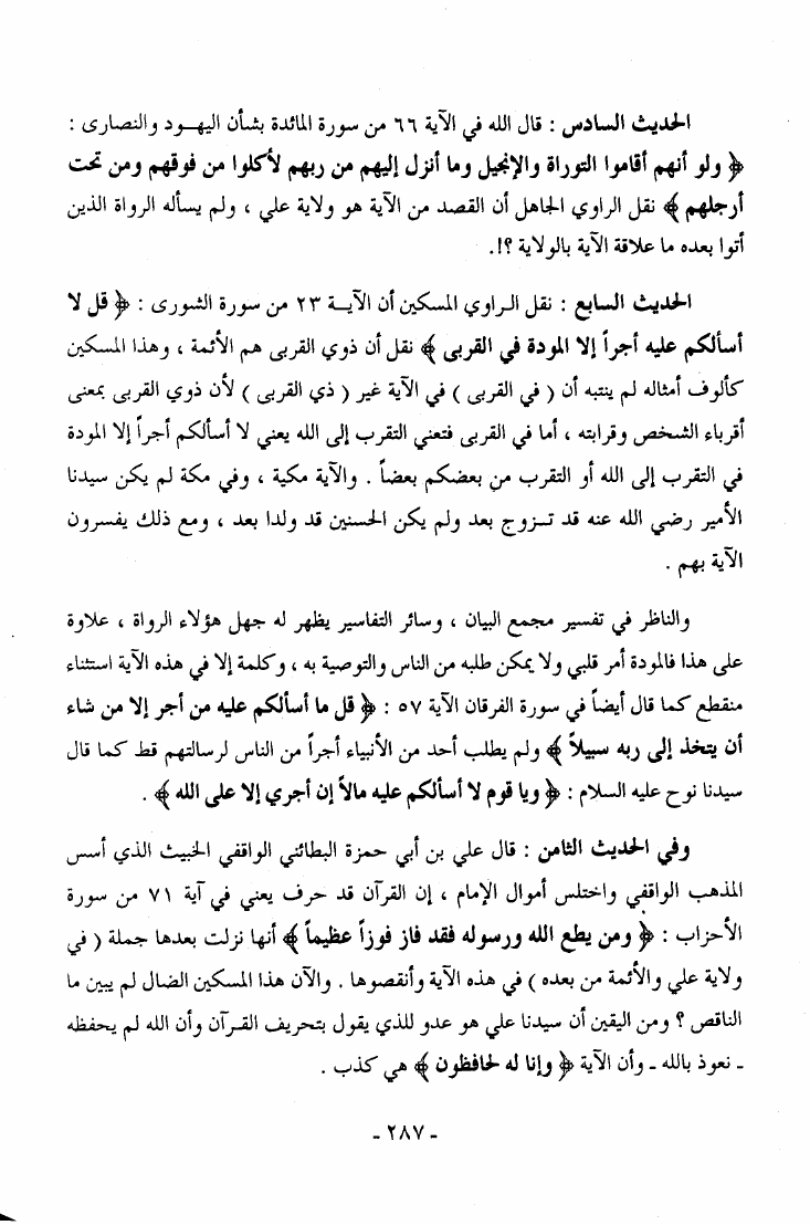نام کتاب : كسر الصنم أو ما ورد في الكتب المذهبية من الأمور المخالفة للقرآن الكريم والعقل نقض كتاب أصول الكافي للكليني نویسنده : آية الله العظمى السيد أبو الفضل ابن الرضا البرقعي جلد : 1 صفحه : 287