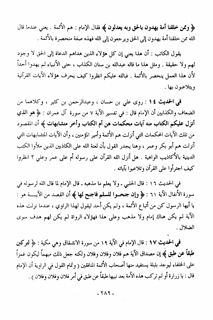 نام کتاب : كسر الصنم أو ما ورد في الكتب المذهبية من الأمور المخالفة للقرآن الكريم والعقل نقض كتاب أصول الكافي للكليني نویسنده : آية الله العظمى السيد أبو الفضل ابن الرضا البرقعي جلد : 1 صفحه : 289