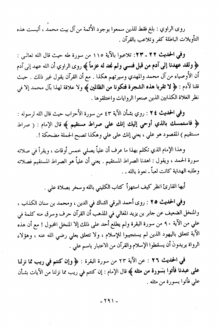 نام کتاب : كسر الصنم أو ما ورد في الكتب المذهبية من الأمور المخالفة للقرآن الكريم والعقل نقض كتاب أصول الكافي للكليني نویسنده : آية الله العظمى السيد أبو الفضل ابن الرضا البرقعي جلد : 1 صفحه : 291
