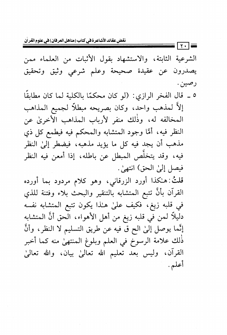 نقض عقائد الأشاعرة في كتاب مناهل العرفان