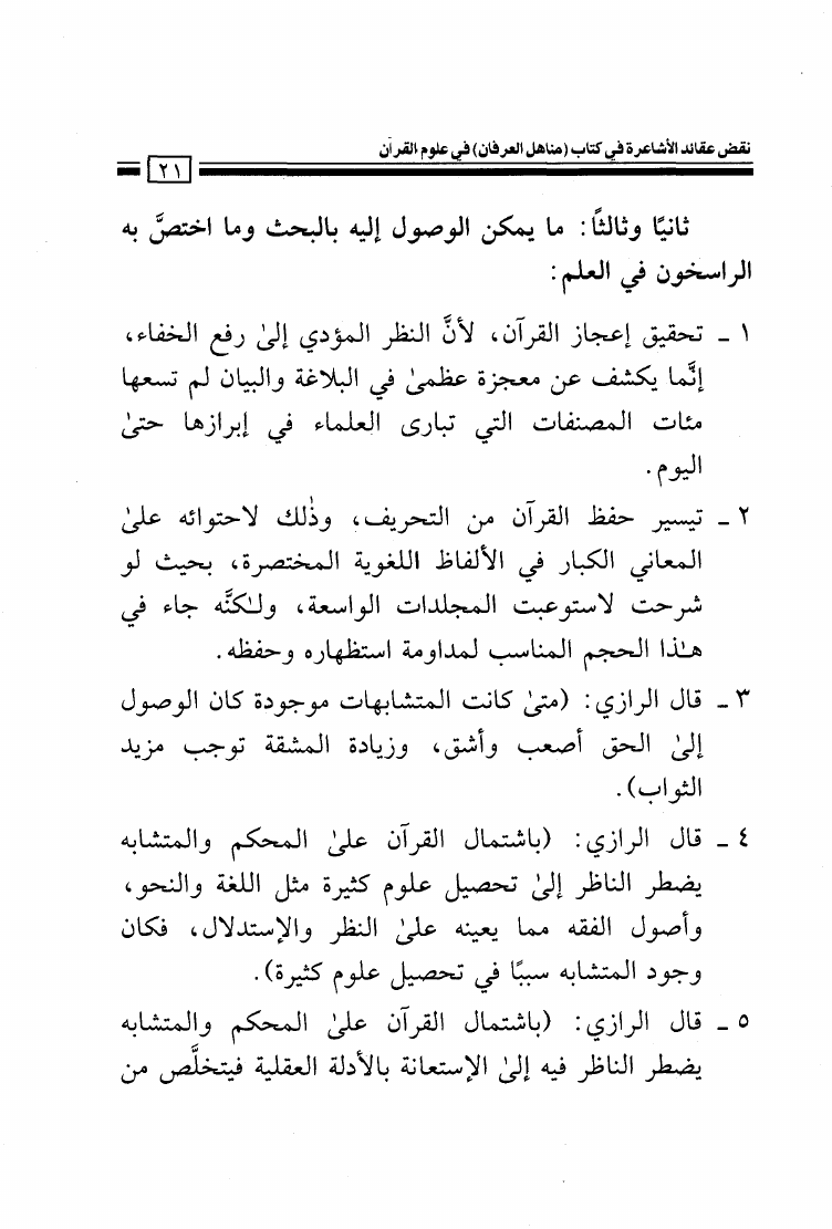 نقض عقائد الأشاعرة في كتاب مناهل العرفان