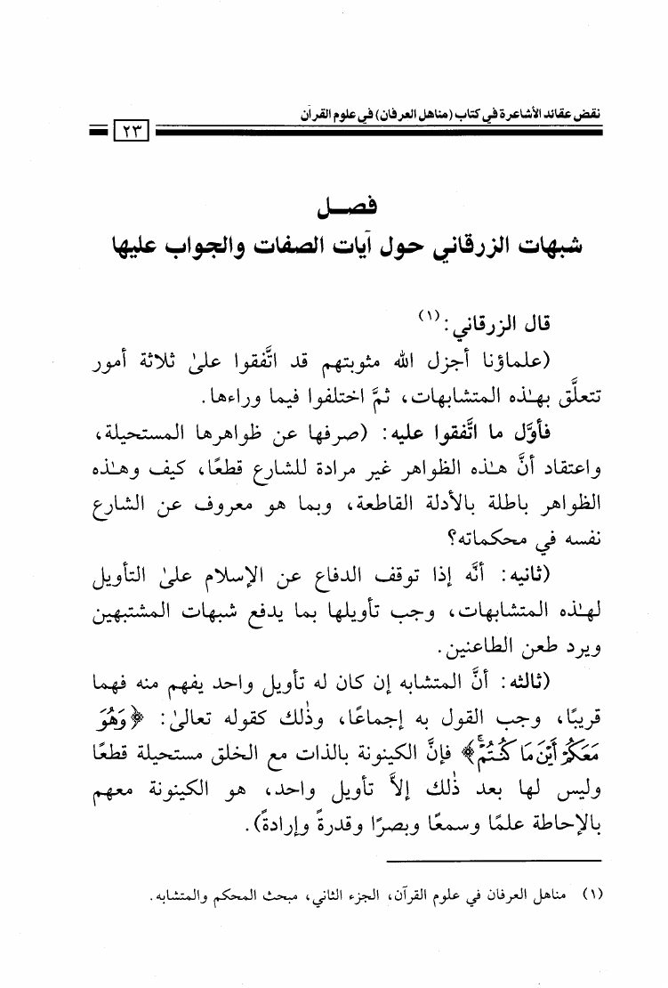 نقض عقائد الأشاعرة في كتاب مناهل العرفان