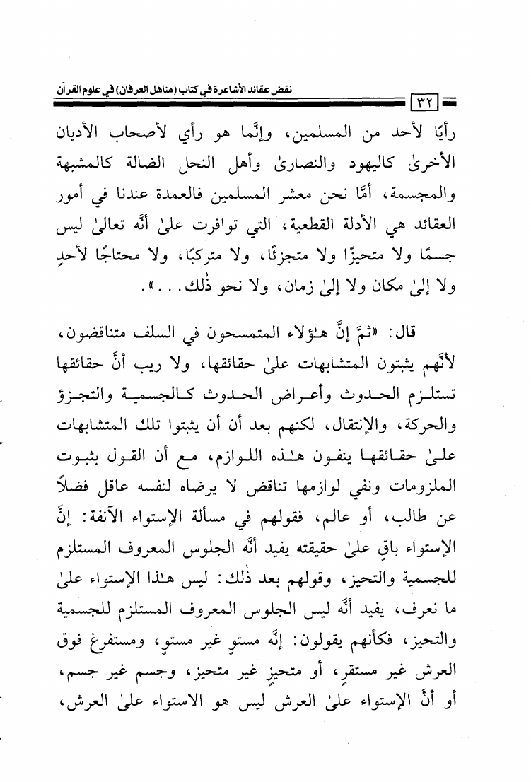 نقض عقائد الأشاعرة في كتاب مناهل العرفان