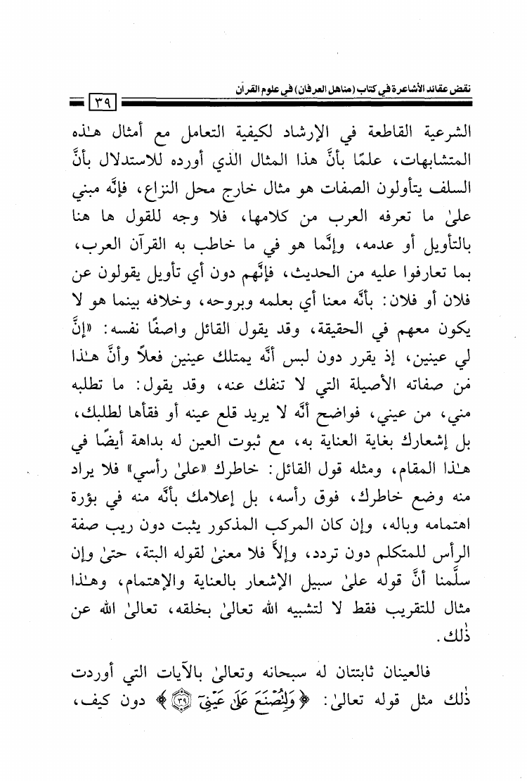 نقض عقائد الأشاعرة في كتاب مناهل العرفان