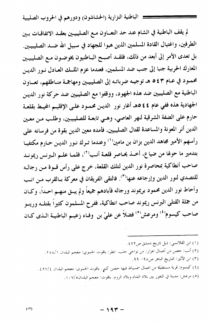 أثر الحركات الباطنية في عرقلة الجهاد ضد الصليبيين
