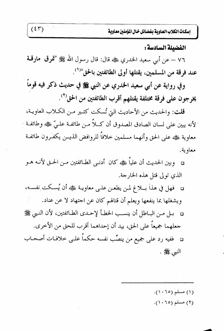 إسكات الكلاب العاوية بفضل خال المؤمنين معاوية