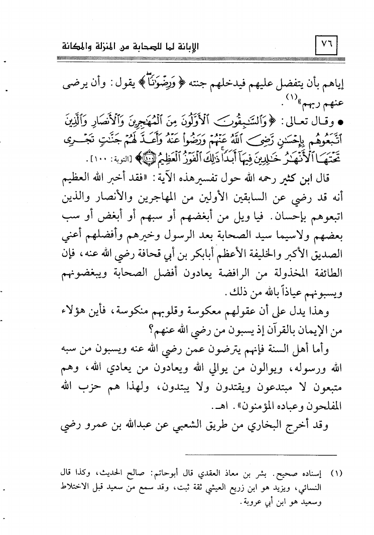 الإبانة لما للصحابة من المنزلة والمكانة