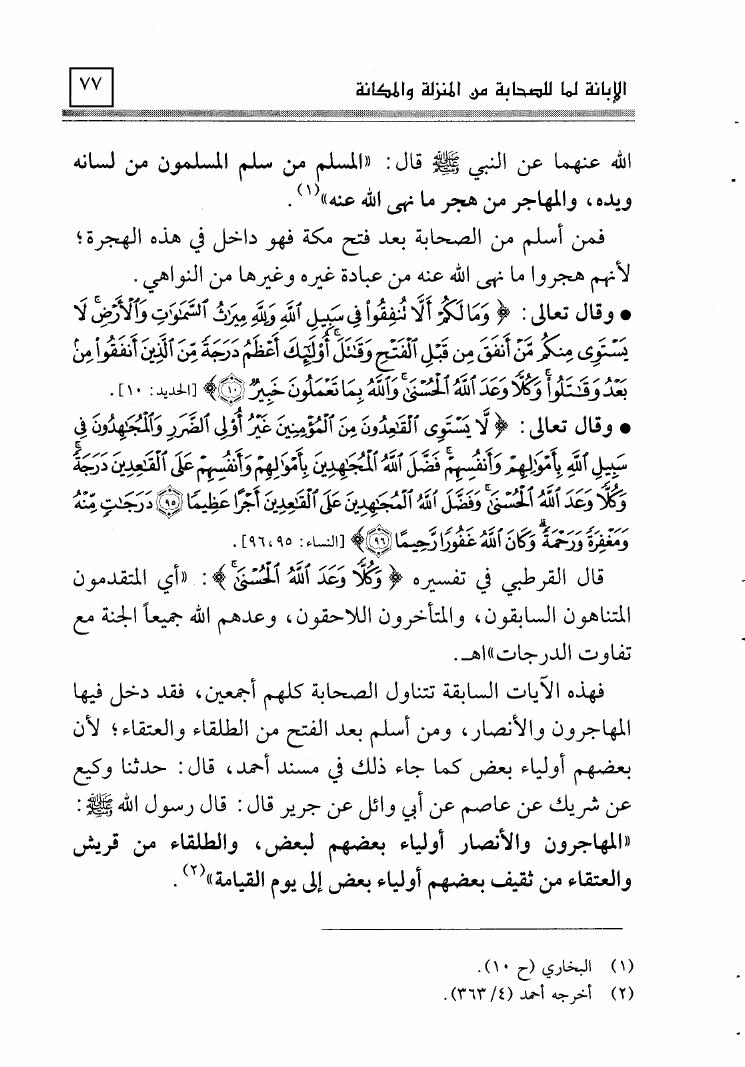 الإبانة لما للصحابة من المنزلة والمكانة