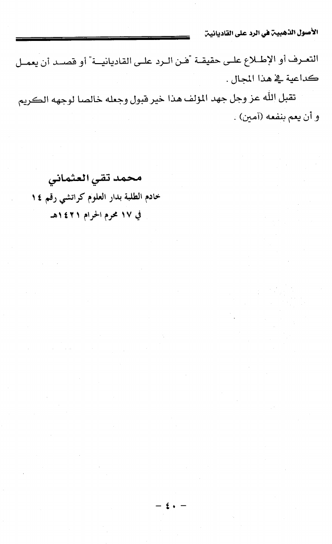 الأصول الذهبية في الرد على القاديانية