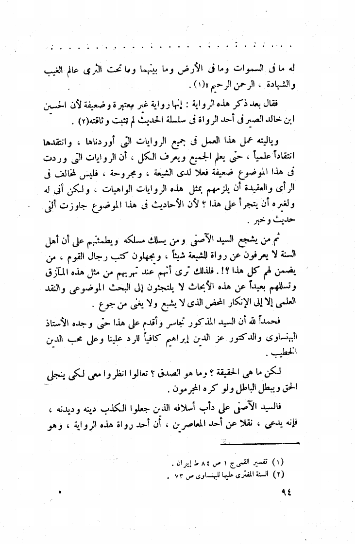 الرد على الدكتور علي عبد الواحد وافي في كتابه (بين الشيعة وأهل السنة)