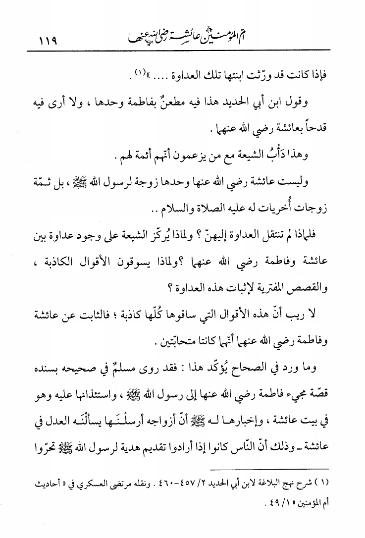 نام کتاب : الصاعقة في نسف أباطيل وإفتراءات الشيعة على أم المؤمنين عائشة مع دفع الكذب المبين عن أمهات المؤمنين نویسنده : عبد القادر بن محمد عطا صوفي جلد : 1 صفحه : 119