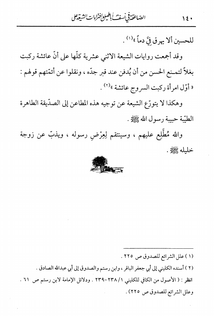 نام کتاب : الصاعقة في نسف أباطيل وإفتراءات الشيعة على أم المؤمنين عائشة مع دفع الكذب المبين عن أمهات المؤمنين نویسنده : عبد القادر بن محمد عطا صوفي جلد : 1 صفحه : 140
