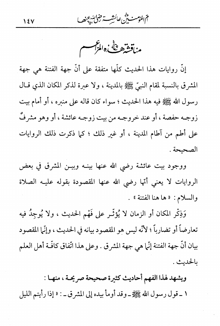 نام کتاب : الصاعقة في نسف أباطيل وإفتراءات الشيعة على أم المؤمنين عائشة مع دفع الكذب المبين عن أمهات المؤمنين نویسنده : عبد القادر بن محمد عطا صوفي جلد : 1 صفحه : 147