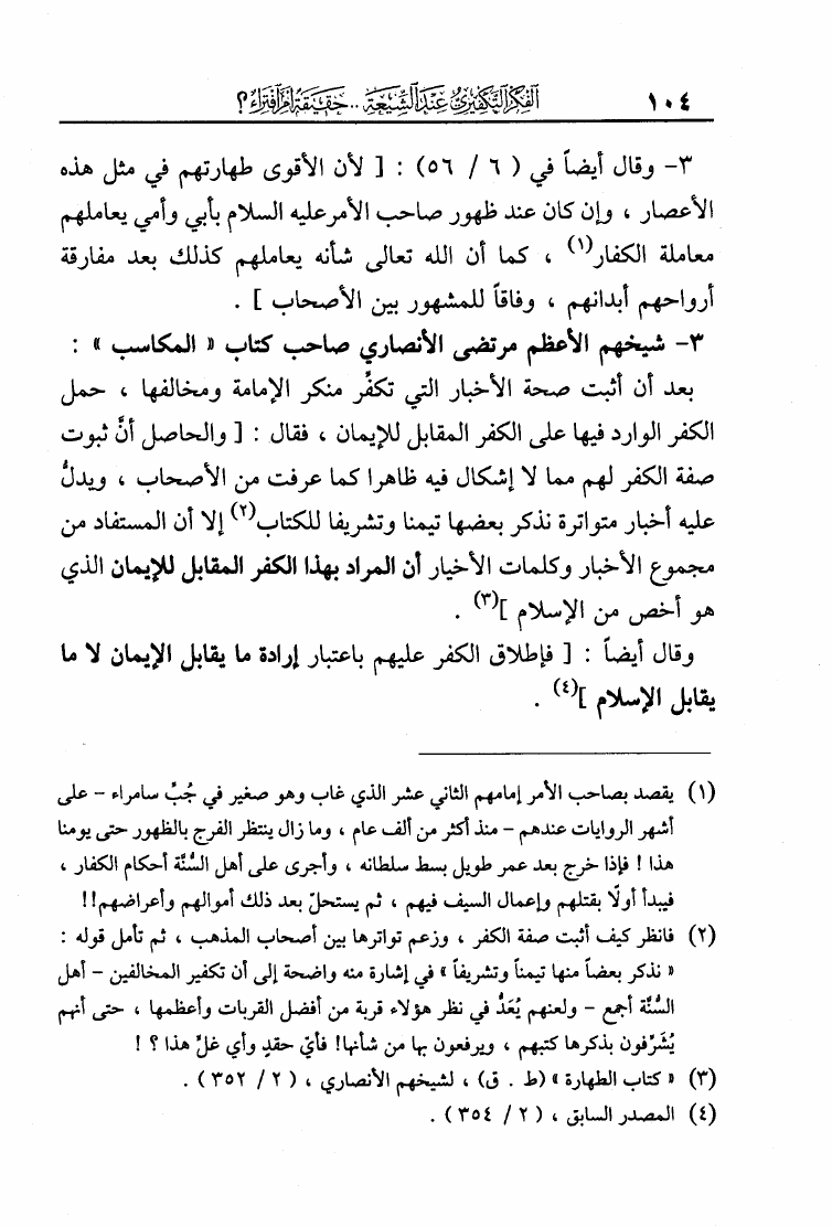 نام کتاب : الفكر التكفيري عند الشيعة حقيقة أم افتراء دراسة موثقة من مرويات الشيعة وتقريرات علمائهم أساساً ومحوراً لها في لفاطة اللثام عن هذه القضية الخطيرة نویسنده : عبد الملك بن عبد الرحمن الشافعي جلد : 1 صفحه : 104