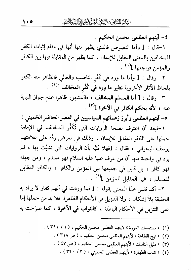 نام کتاب : الفكر التكفيري عند الشيعة حقيقة أم افتراء دراسة موثقة من مرويات الشيعة وتقريرات علمائهم أساساً ومحوراً لها في لفاطة اللثام عن هذه القضية الخطيرة نویسنده : عبد الملك بن عبد الرحمن الشافعي جلد : 1 صفحه : 105