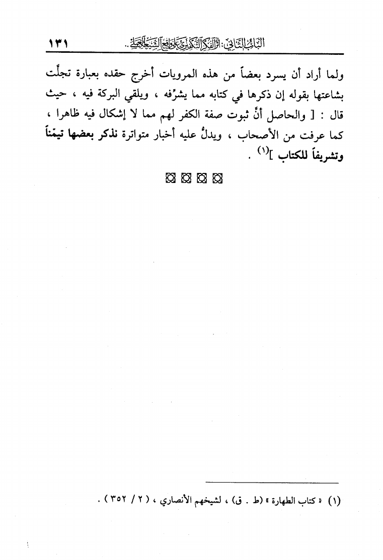 نام کتاب : الفكر التكفيري عند الشيعة حقيقة أم افتراء دراسة موثقة من مرويات الشيعة وتقريرات علمائهم أساساً ومحوراً لها في لفاطة اللثام عن هذه القضية الخطيرة نویسنده : عبد الملك بن عبد الرحمن الشافعي جلد : 1 صفحه : 131