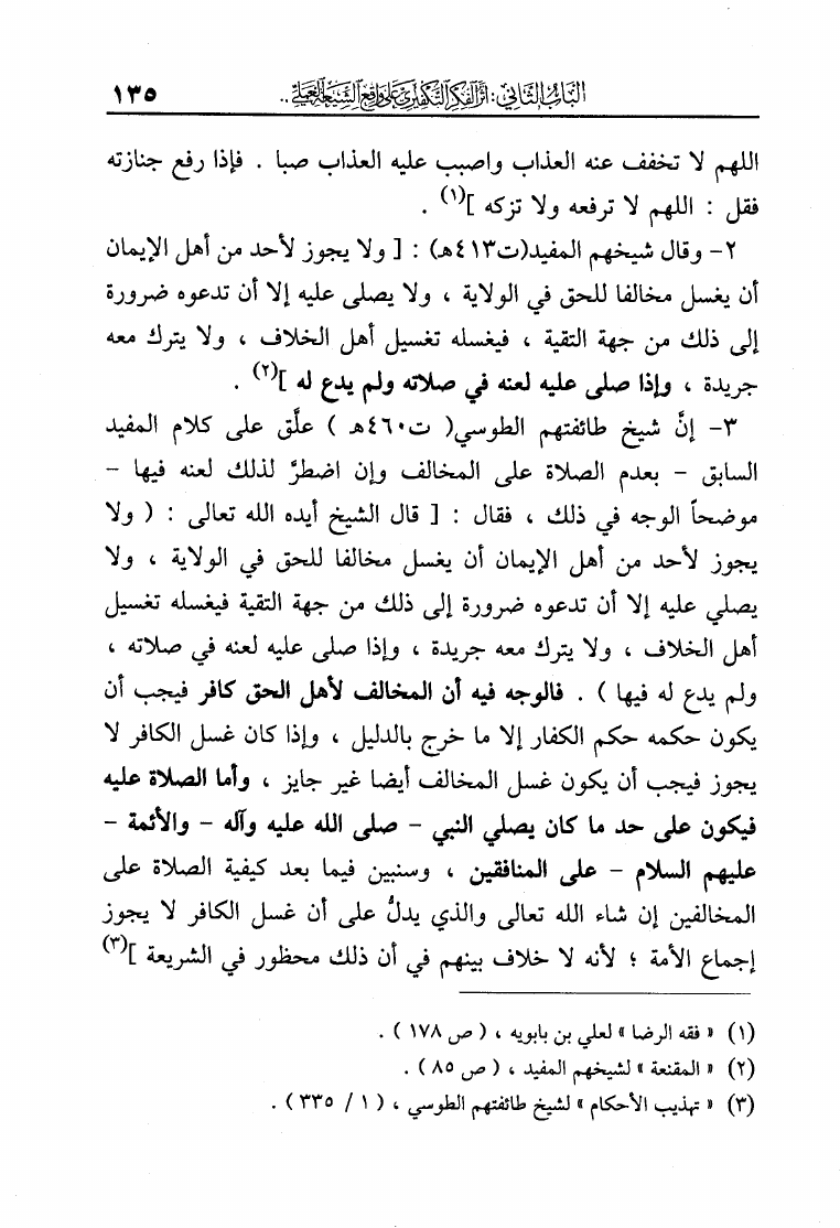 نام کتاب : الفكر التكفيري عند الشيعة حقيقة أم افتراء دراسة موثقة من مرويات الشيعة وتقريرات علمائهم أساساً ومحوراً لها في لفاطة اللثام عن هذه القضية الخطيرة نویسنده : عبد الملك بن عبد الرحمن الشافعي جلد : 1 صفحه : 135