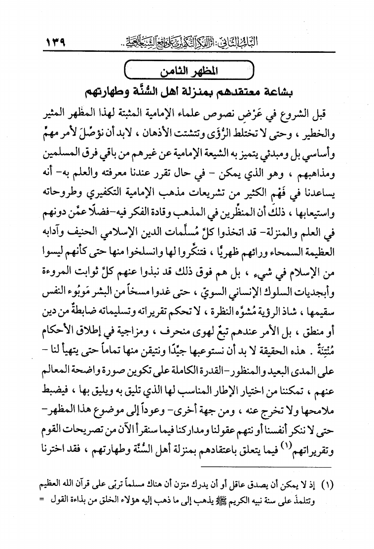 نام کتاب : الفكر التكفيري عند الشيعة حقيقة أم افتراء دراسة موثقة من مرويات الشيعة وتقريرات علمائهم أساساً ومحوراً لها في لفاطة اللثام عن هذه القضية الخطيرة نویسنده : عبد الملك بن عبد الرحمن الشافعي جلد : 1 صفحه : 139