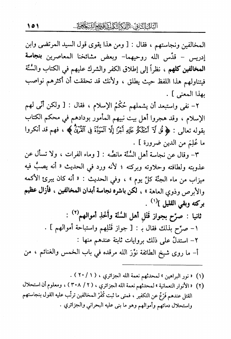 نام کتاب : الفكر التكفيري عند الشيعة حقيقة أم افتراء دراسة موثقة من مرويات الشيعة وتقريرات علمائهم أساساً ومحوراً لها في لفاطة اللثام عن هذه القضية الخطيرة نویسنده : عبد الملك بن عبد الرحمن الشافعي جلد : 1 صفحه : 151