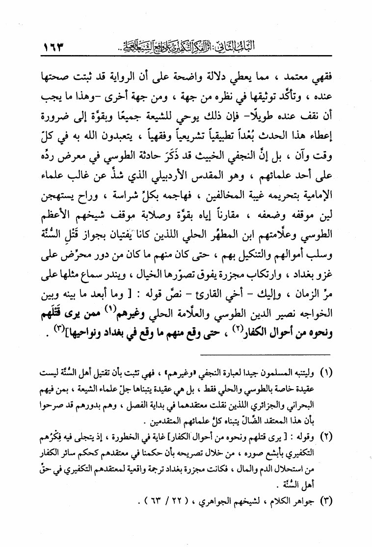 نام کتاب : الفكر التكفيري عند الشيعة حقيقة أم افتراء دراسة موثقة من مرويات الشيعة وتقريرات علمائهم أساساً ومحوراً لها في لفاطة اللثام عن هذه القضية الخطيرة نویسنده : عبد الملك بن عبد الرحمن الشافعي جلد : 1 صفحه : 163