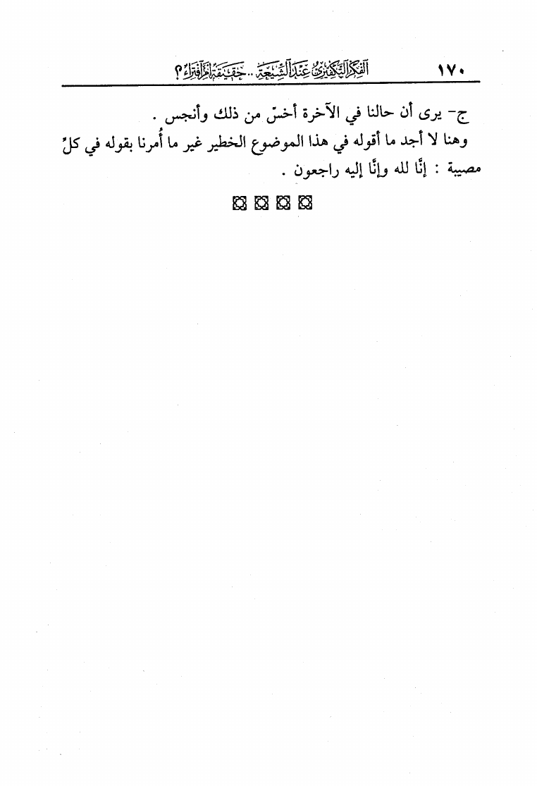 نام کتاب : الفكر التكفيري عند الشيعة حقيقة أم افتراء دراسة موثقة من مرويات الشيعة وتقريرات علمائهم أساساً ومحوراً لها في لفاطة اللثام عن هذه القضية الخطيرة نویسنده : عبد الملك بن عبد الرحمن الشافعي جلد : 1 صفحه : 170