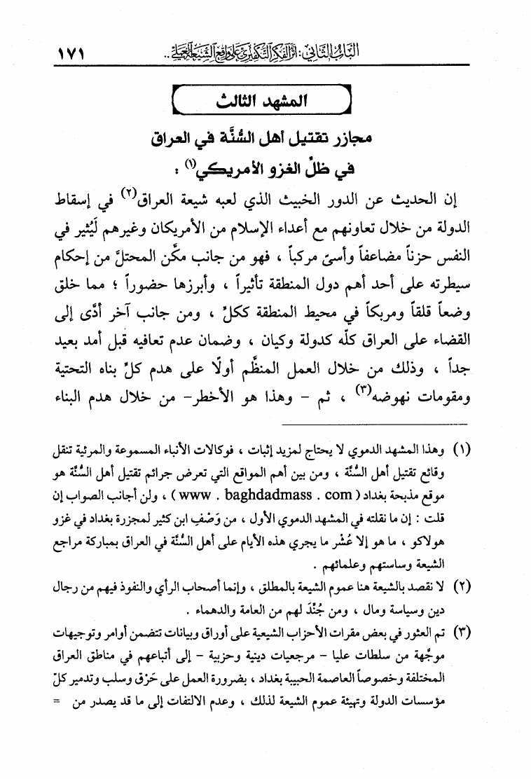 نام کتاب : الفكر التكفيري عند الشيعة حقيقة أم افتراء دراسة موثقة من مرويات الشيعة وتقريرات علمائهم أساساً ومحوراً لها في لفاطة اللثام عن هذه القضية الخطيرة نویسنده : عبد الملك بن عبد الرحمن الشافعي جلد : 1 صفحه : 171