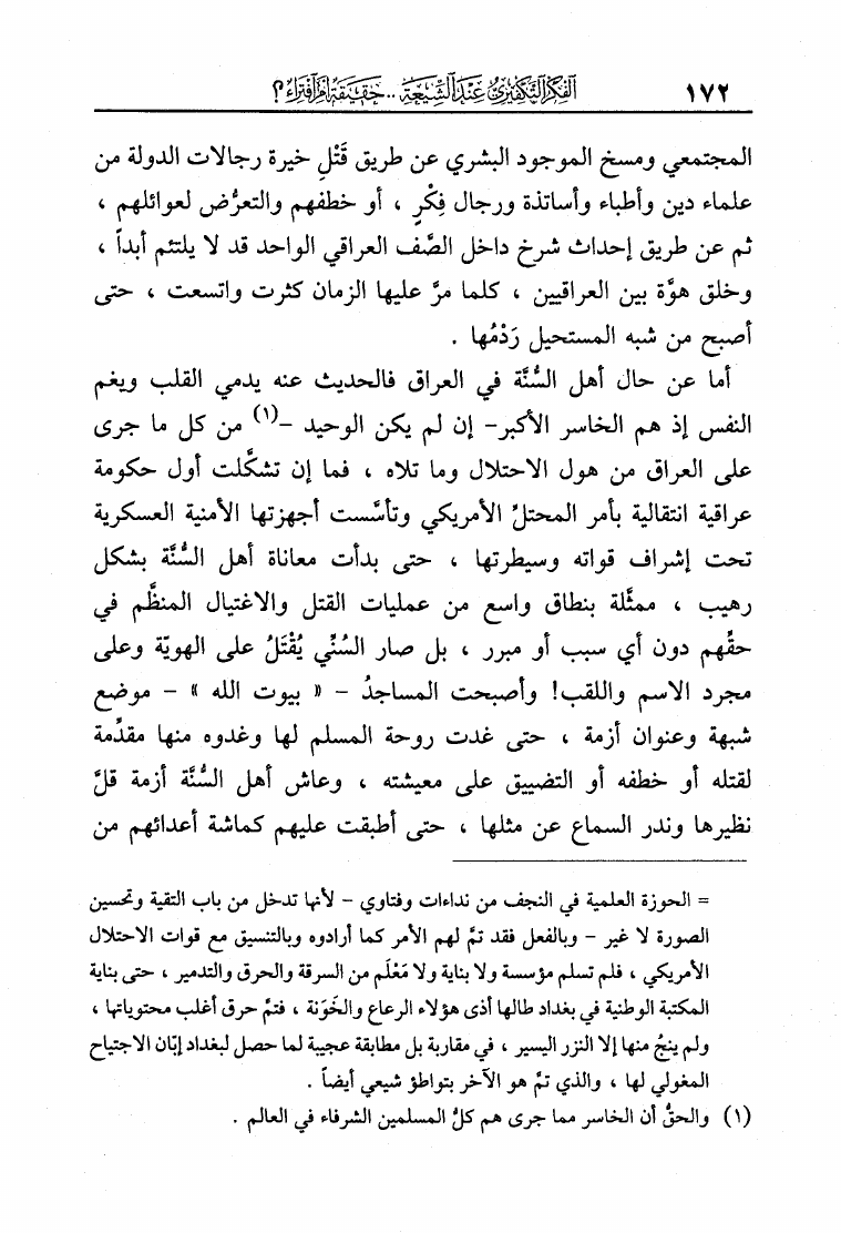 نام کتاب : الفكر التكفيري عند الشيعة حقيقة أم افتراء دراسة موثقة من مرويات الشيعة وتقريرات علمائهم أساساً ومحوراً لها في لفاطة اللثام عن هذه القضية الخطيرة نویسنده : عبد الملك بن عبد الرحمن الشافعي جلد : 1 صفحه : 172